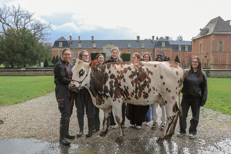 « Cela fait six mois qu’on prépare notre mascotte tous les soirs après les cours, même si cette année les épreuves se déroulent par vidéo. Ultra est une primipare de 4 ans qui s’apprête à vêler », explique Thia Bourseau, venue de région parisienne étudier au Robillard. Passionnée par les animaux, elle aspire à devenir vétérinaire.