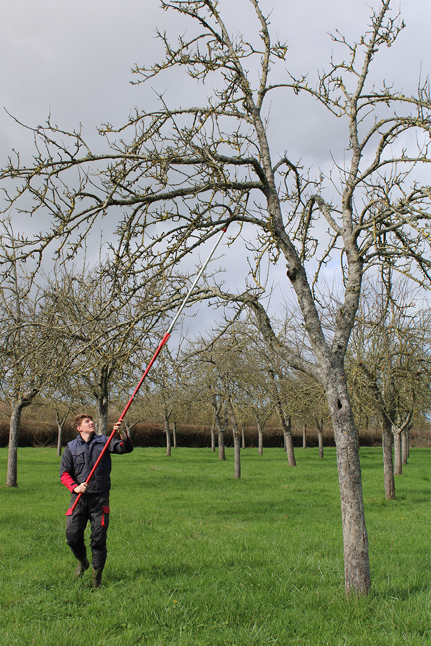 En attendant de s’installer à son compte, Théo gère entièrement les huit hectares de vergers du Robillard. Plantation, taille, production et commercialisation, il pilote toutes ces activités. « J’ai une grande autonomie. La récolte tourne autour de 40 à 50 tonnes de pommes. Ça permet de produire près de 15 000 bouteilles de cidre, de jus de pomme, bref, toute la gamme des produits. »